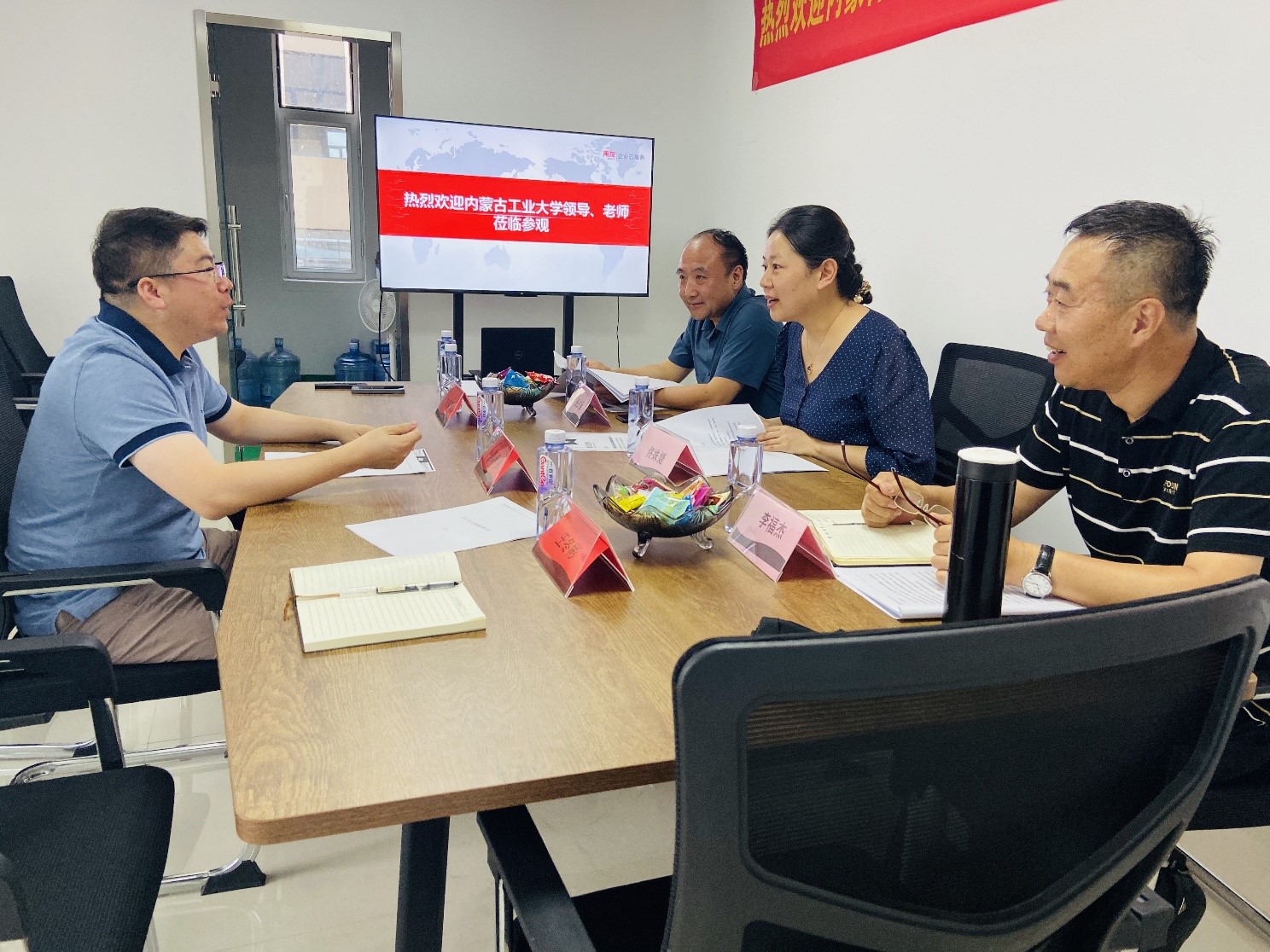 内蒙古乌兰风华互联网科技有限公司是用友集团授权在内蒙古地区设立的人才培训指定机构。用友网络内蒙古人才服务中心负责人郭希伟、用友网络内蒙古人才服务中心市场部经理王冬彬等企业代表对佟姝婕一行表示热烈欢迎。