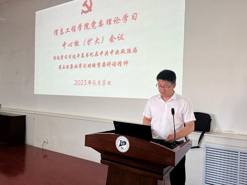 6月8日,学院党委理论学习中心组(扩大)召开专题学习会,深入学习领会习近平总书记在中共中央政治局第五次集体学习时的重要讲话精神。学院党委书记乌迪主持会议,全院教职工参加学习。