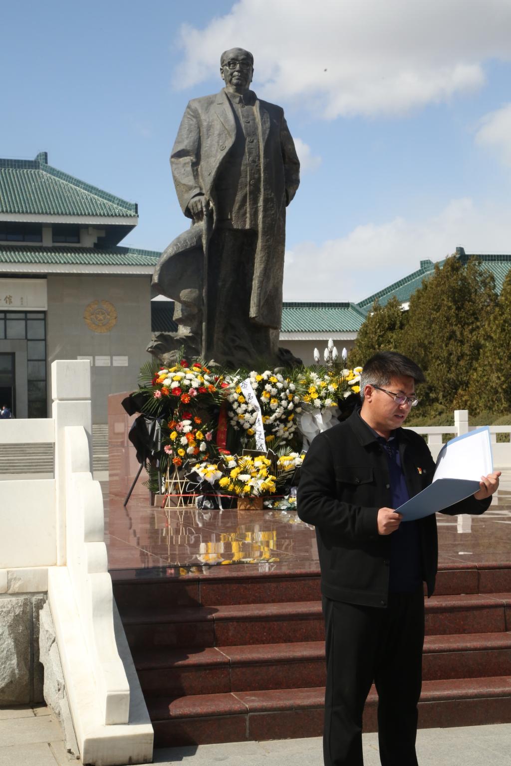 全体师生党员怀着无比崇敬的心情在乌兰夫塑像前静默肃立,通过默哀致敬、敬献鲜花、重温入党誓词等活动,深情缅怀革命先烈的英雄事迹,感受英烈气息,表达对革命先烈的崇高敬意。最后,由解说员带领我院师生党员走进纪念馆,切身感受乌兰夫同志光辉奋斗的一生。