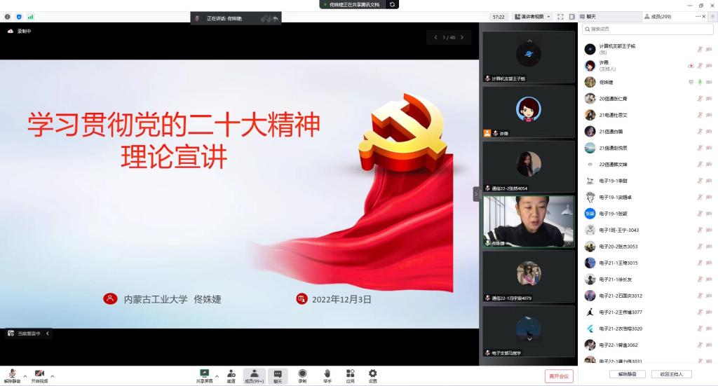 党委书记乌迪以“追忆开过国历程 做新时代好青年”为题,鼓励同学们做有理想、敢担当、能吃苦、肯奋斗的新时代好青年;副研究员王彩玲引导同学们充分认识党的二十大的重要意义;副书记、副院长佟姝婕为同学们深入解读党的二十大精神;学院党委委员许霞就如何做一名合格的大学生党员这一主题为同学们宣讲;校外辅导员翟鹤重点普及大学生保密知识。
