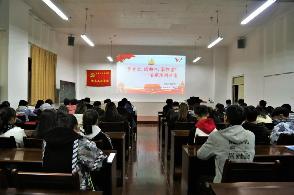 2021年10月19日,在“落霞与孤鹜齐飞,秋水共长天一色”秋日里,信息工程学院学生党支部举办了以“学党史,践初心,敢担当”主题演讲比赛。