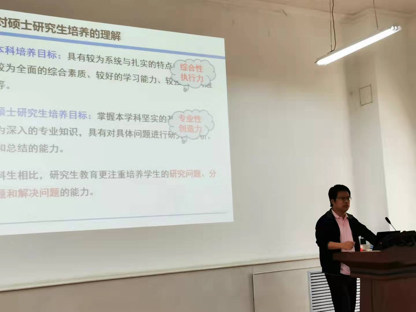 之后,信通学科点徐伟教授为导师们做了关于如何培养研究生的经验汇报。徐伟老师讲述了他培养研究生的一些亲身经历和感受,为大家分享了宝贵经验,获得导师们的一致好评。