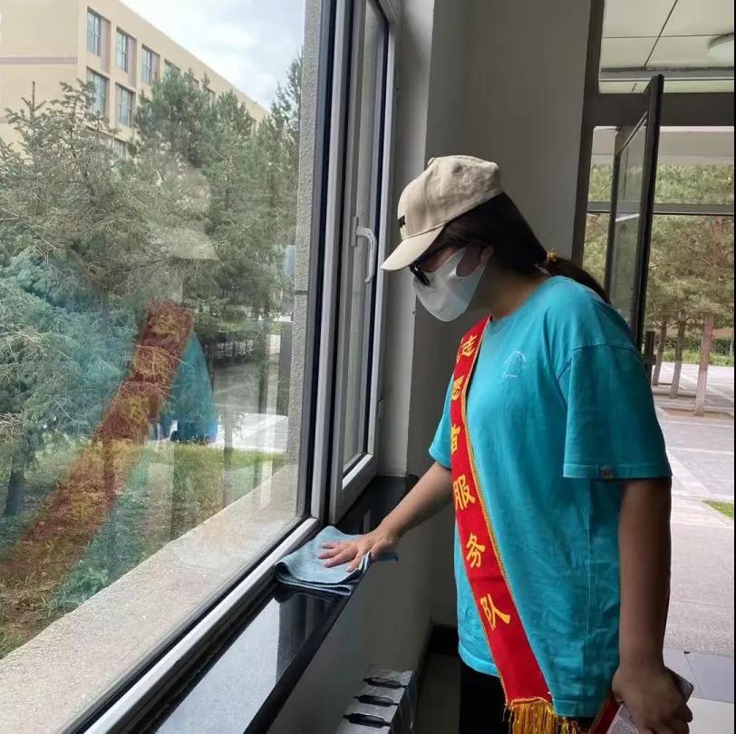 教学楼内,志愿者们积极帮助楼内的保洁阿姨们清扫教室卫生,他们秉承着无私奉献,不求回报的志愿者精神,拿着墩布将教室里每一个角落打扫的干干净净,用抹布将教室内的桌子擦的干干净净,教室楼内的每个角落,在志愿者们的付出下变得一尘不染。