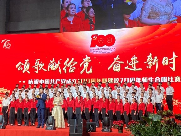 风雨苍黄百年路,高歌奋进新征程。今年是中国共产党成立100周年,也是内蒙古工业大学建校70周年。为庆祝党的百年华诞与建校70周年,6月26日,内蒙古工业大学于卓越文体馆特举办“颂歌献给党,奋进新时代”师生合唱比赛。我院师生代表107人参加并激情演唱《社会主义好》。
