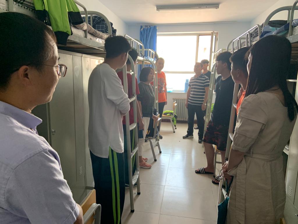 在新生宿舍里,老师们悉心询问新生们的基本情况,就新生是否适应新的环境、住宿是否习惯、寝室卫生、餐饮食品等问题进行了详细的询问,同时在入学适应方面为大家进行指导,对大家的学习规划提出建议。各位老师还为大家强调了宿舍安全、个人财产安全、寝室卫生环境等问题,并重点强调了诈骗问题以及校园贷问题,嘱咐同学要增强防范意识;其次和同学们强调了寝室卫生问题和人际交往问题,并表示要营造良好的寝室环境,室友之间要相互理解相互帮助。