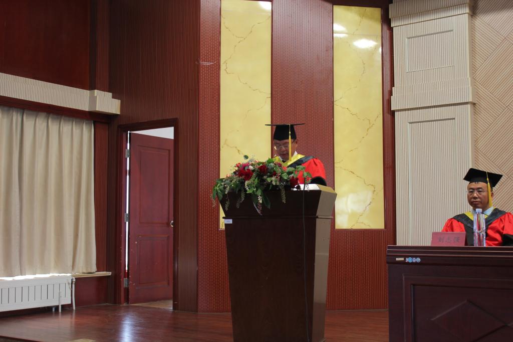 副院长黄平平宣读了获得硕士学位毕业生、学士学位毕业生名单。受校长、校学位评定委员会主任委员邢永明教授的委托,学位分委员会主席、院长李春明教授为获得硕士学位的毕业生授予学位,学院领导及学位分委员成员为获得学士学位的毕业生授予学位。