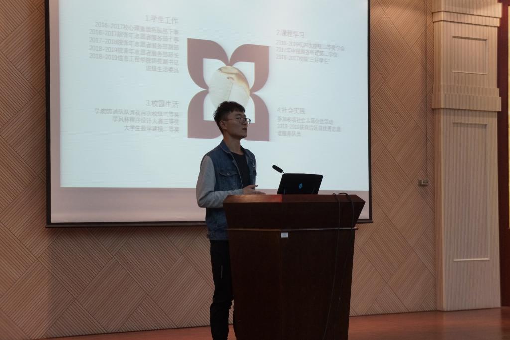 郑梓文同学分享了自己在部队的经历,让在场同学对“青春与国家”有了更深的理解;王世博同学则针对学生干部经历对于求职就业的积极影响做了分享;武星志同学就团队精神、自我认知、时间规划、换位思考四个方面进行经验交流;王一鸣同学分享了自己多重身份学生工作经历,用自己的实际行动证明了“时间挤一挤总会有”。高琴同学则鼓励在场学弟学妹多多尝试突破自我,科技创新、文艺比赛等方面各尽所长,充实自己的大学生活。