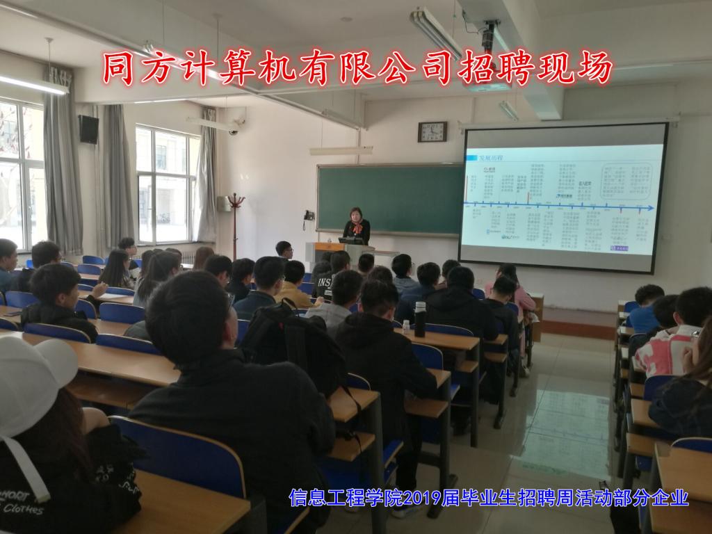 3月25日下午,我院2019届毕业生就业招聘周活动拉开帷幕。三月初以来,学院组织毕业生到各地集中完成毕业实习,月末大部分毕业生都已返校,但很多毕业生工作仍未落实。另外,还有一批考研结果不理想的同学也有就业打算,针对以上情况,学院领导研究决定邀请一些一直以来联系比较密切,岗位需求较大的企业来学院举行现场招聘会。受学院邀请,清华同方股份有限公司领导率先来学院招聘。