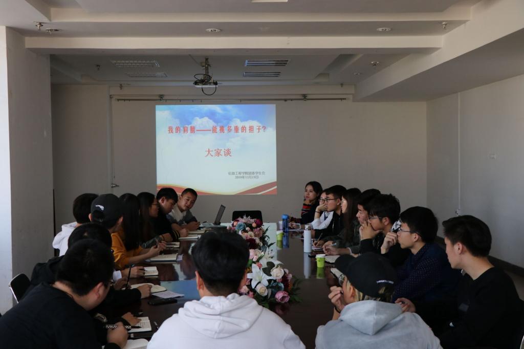 “我的肩膀——能挑多重的担子?”主题讨论会,参会学生干部激情洋溢地讲述着自己参与学生干部工作以来收获的辛酸喜悦,并分享自己部门工作取得的优异成绩以及今后的工作思路。讨论会的开展为今后学生会工作奠定了坚实的基础。