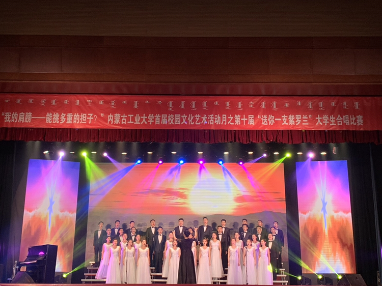 除此之外,学院积极响应学校“我的肩膀—能挑多重的担子?”系列活动号召,组织全院学生在内蒙古工业大学官方微信平台、“工大青春志”和“内蒙古供大学生学生会”微信公众号上,为“我为改革开放点赞,我为内蒙古喝彩,我为祖国打call”相关推送点赞留言;精心排练,选派歌唱作品《劳动托起中国梦》参加内蒙古工业大学第十届大学生合唱比赛暨大学生文化艺术活动月开幕式;选派作品两份参加“我抖担当志,我秀爱国情”抖音大赛。作品涉及爱国与校园,积极向上。