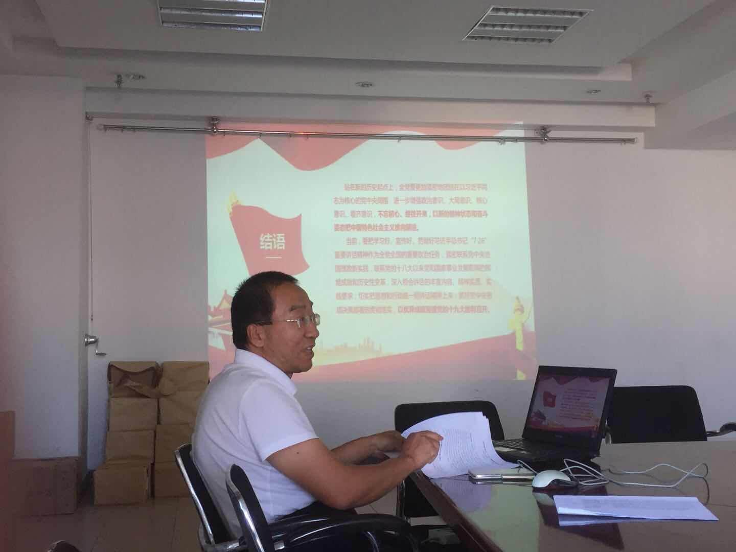 9月28日上午,行政党支部组织全体教工党员深入学习贯彻习近平总书记“7.26”重要讲话精神,迎接十九大胜利召开工作会议精神,会议由王金彪同志主讲。会上,王金彪同志传达了深入学习贯彻习近平总书记“7·26”重要讲话精神,并就我支部贯彻落实会议精神提出了相关要求。