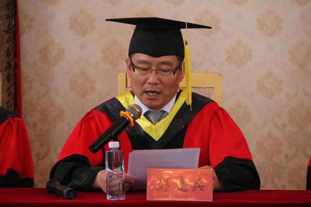 毕业典礼暨学位授予仪式在庄严的国歌声中拉开序幕。学位分委员会委员、副院长孟克其劳和刘利民分别宣读了获得硕士学位毕业生名单、学士学位毕业生名单。学院党委书记彭建兵宣读《关于对2016年优秀硕士论文、本科毕业设计获得者及指导教师表彰的决定》。学院领导为获奖教师及同学颁发荣誉证书,之后为获得“安博奖学金”的同学颁发证书。