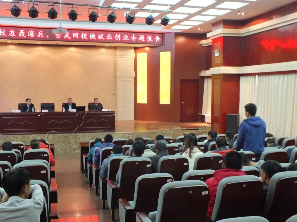 我院副书记、副院长王金彪,就业办主任蔡永刚及200余名在校生一起聆听了两位校友的讲座,大家被精彩的讲座深深打动。