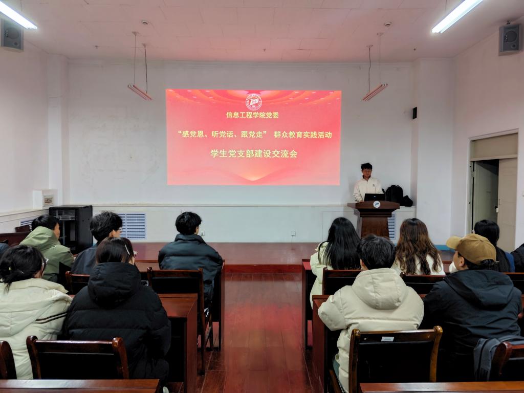 为贯彻落实习近平新时代中国特色社会主义思想,积极开展爱国主义教育,引导学生感党恩、听党话、跟党走,厚植爱党爱国情怀。2024年3月7日,我院学生党支部在电力大楼十楼会议室开展“感党恩、听党话、跟党走”群众教育实践活动—学生党支部建设交流会。