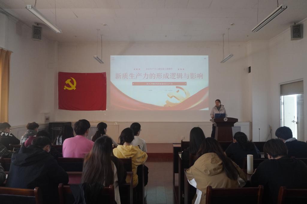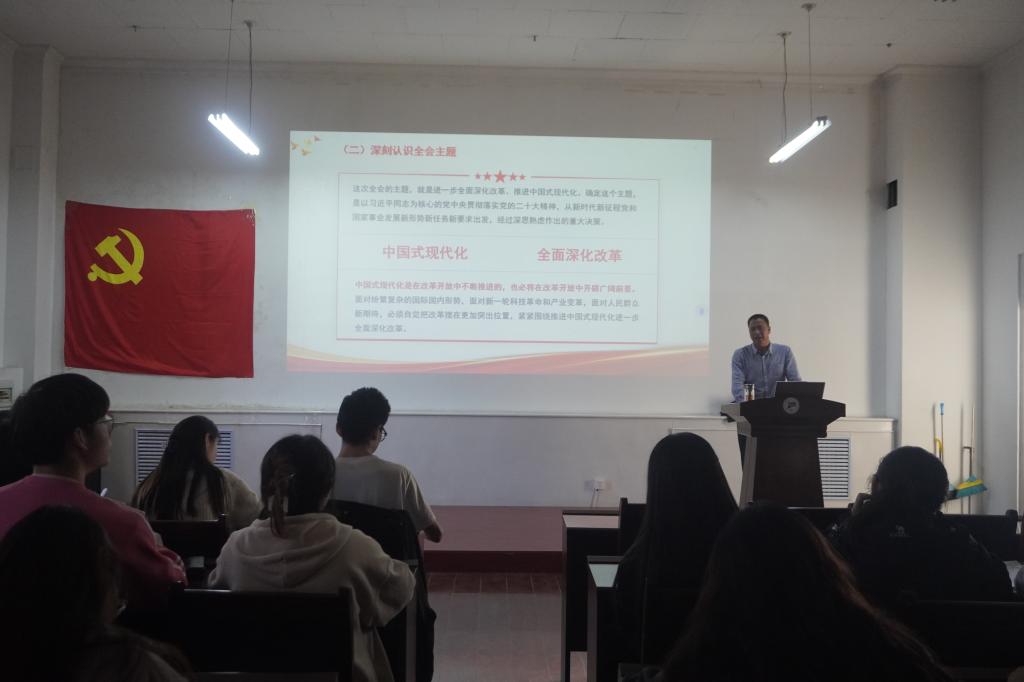党委书记刘建国以“领悟核心要义,践行全会精神:党的二十届三中全会精神解读”为题为同学们进行了深入浅出的讲解;党委副书记、副院长佟姝婕组织大家对“新质生产力的形成逻辑与影响”这一课题进行深入讨论交流,副研究员王彩玲以“铸牢中华民族共同体意识”为主题为大家授课;党委委员许霞以“怎样成为一名合格的大学生党员”为题引导大家展开讨论、学习;校外辅导员翟鹤重点给大家讲解了大学生保密知识教育。