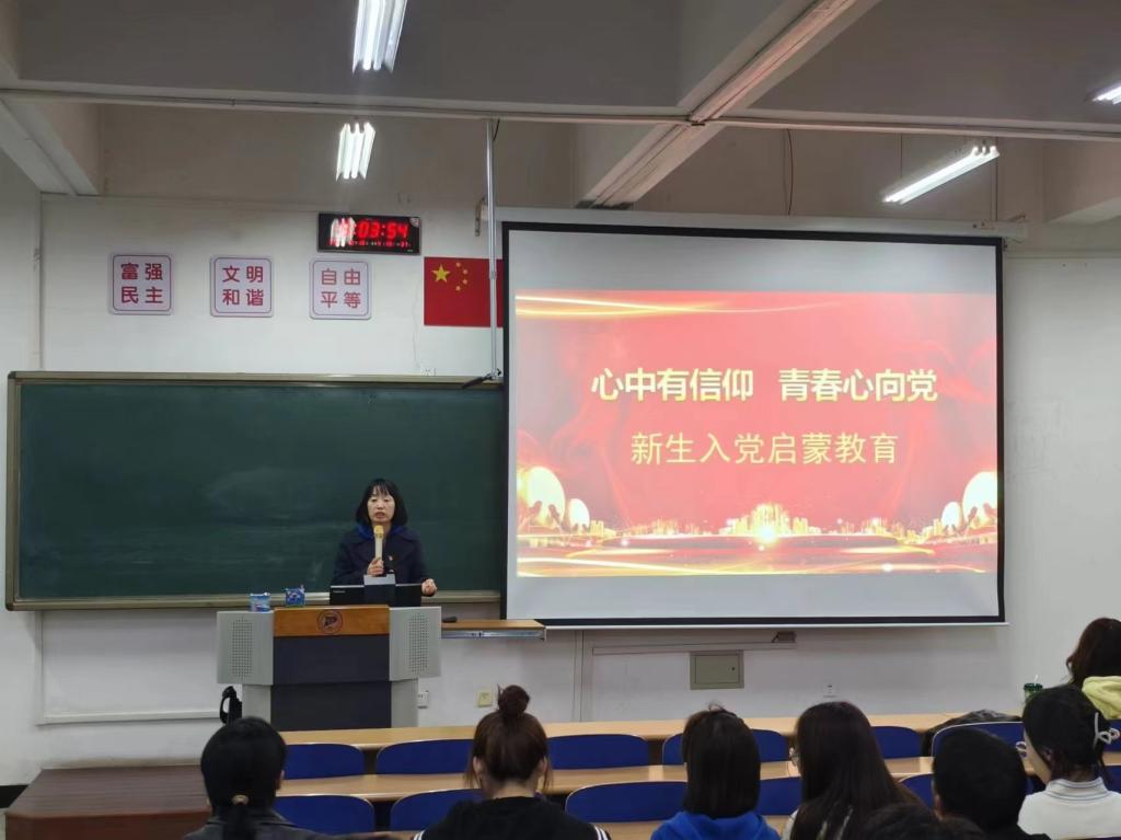 许霞老师围绕“心中有信仰,青春心向党”为主题,深入浅出地介绍了党的基础知识、明确申请入党的条件、共产党员的条件和标准等。学生党员王琦带领同学们学习党的性质、端正入党动机等知识,介绍了发展党员的工作流程及入党材料的写作要求。鼓励新生们从启蒙教育开始,自觉学习党的理论知识,增强政治觉悟,努力提高自身综合素质,为将来成为一名合格的共产党员做好准备。
