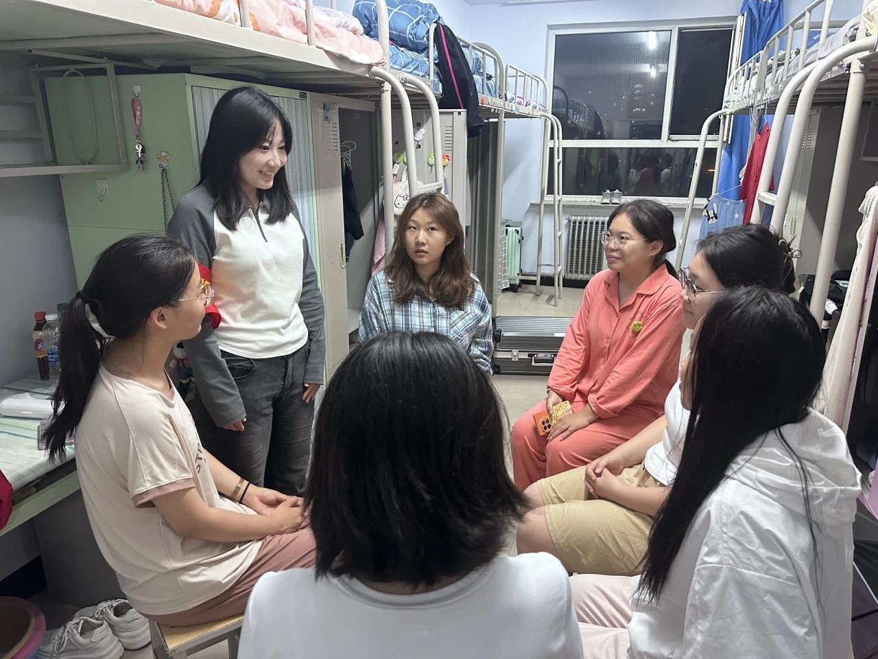 活动中,学生党员们走进新生宿舍,化身为新生的“第7个舍友”,与对接宿舍的新同学围绕校园生活、军训事宜、学业规划等话题进行了深入地交流,党员们用自己的实践摸索有针对性地为新同学提出解决方案进行一对一结对帮扶。秉承学习是第一要务的原则,党员们分享自己大学的学习经验,并举例专业课的重要知识点,采用提问加互动的方式,寓教于乐,让同学们在轻松愉快的氛围内了解专业课所需。