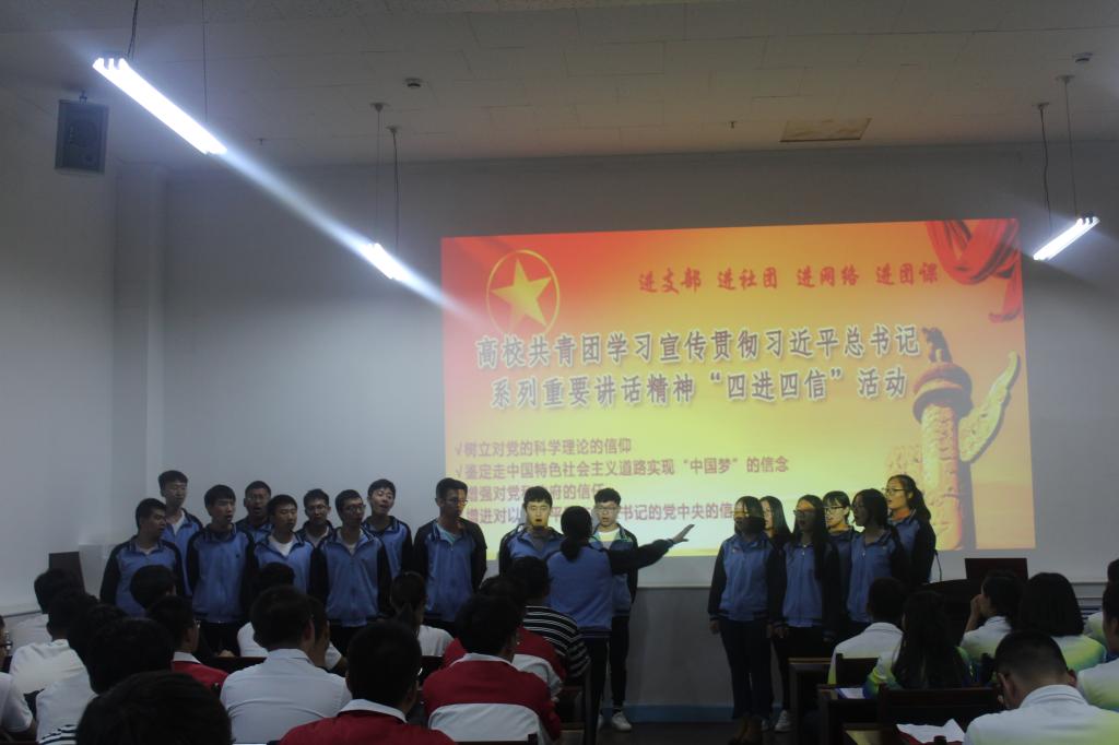 为加强学生对习近平新时代中国特色社会主义思想的理解、深化学生对“四进四信”内容的领悟,牢固树立“四个意识”,坚定“四个自信”,我院于5月16日晚7:00在电力大楼10楼西配举行了“四进四信,争做四可青年”主题活动。