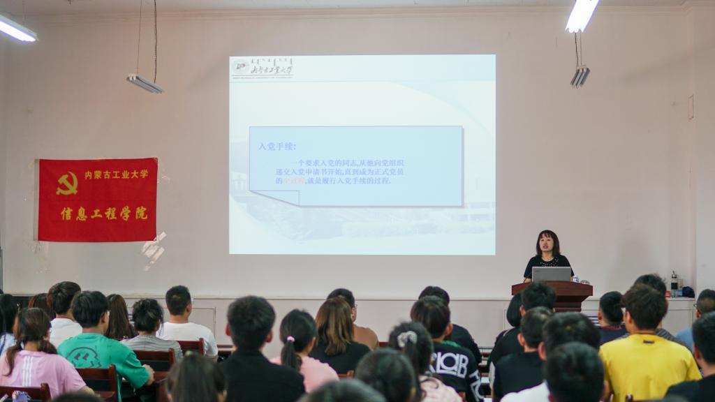2021年5月21日,内蒙古工业大学信息工程学院举办第67期积极分子培训班,共有93名同学参加学习。本期培训以明晰党史,进一步端正入党动机为主线,主要采取集中授课、课后自学、观看教育影片、小组讨论等形式,组织学员认真学习贯彻党的路线、方针、政策,并开展党的基本理论、党的光辉历程以及端正入党动机等方面的学习和教育。