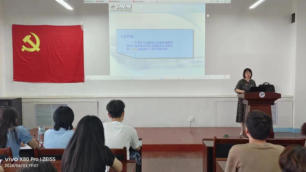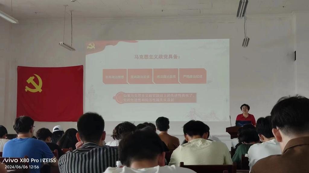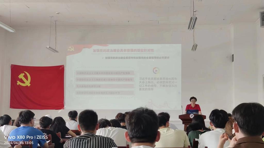 人文学院副院长张莉蔚以“用法治保障民族团结,推进民族团结进步事业高质量发展”为题为同学们进行了深入浅出的讲解;党委书记刘建国组织大家对“做学纪知纪明纪守纪的时代新人”这一课题进行深入讨论交流;党委副书记、副院长佟姝婕对“中国共产党为什么能”这一话题引导大家展开讨论、学习;党委纪检委员、副院长张占强以“扎实开展党纪党纪学习教育,用党规党纪校正思想和行动”为题讲解学习党纪的重要性;副研究员王彩玲以“政治建设是党的根本性建设”为主题为大家授课;学院党委委员许霞对端正大学生入党动机和大学生入党流程做了深入介绍;校外辅导员翟鹤重点给大家讲解了大学生保密知识教育。