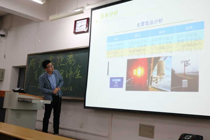 活动开始,张维庭首先对“互联网+”大学生创新创业大赛以及大赛的流程做了相关介绍,并就参赛各个环节需要注意的事项为大家进行了详细讲解,当谈到大赛的准备事宜时,张维庭同学强调了“用心”的重要性,小到PPT的制作,大到项目计划书的撰写,都需要大家百分之百用心去完成。活动中,他以自身参赛项目为例现场为大家做了项目汇报,并与在场同学分享了自己的参赛经验及收获,为大家提供了许多有益的建议。